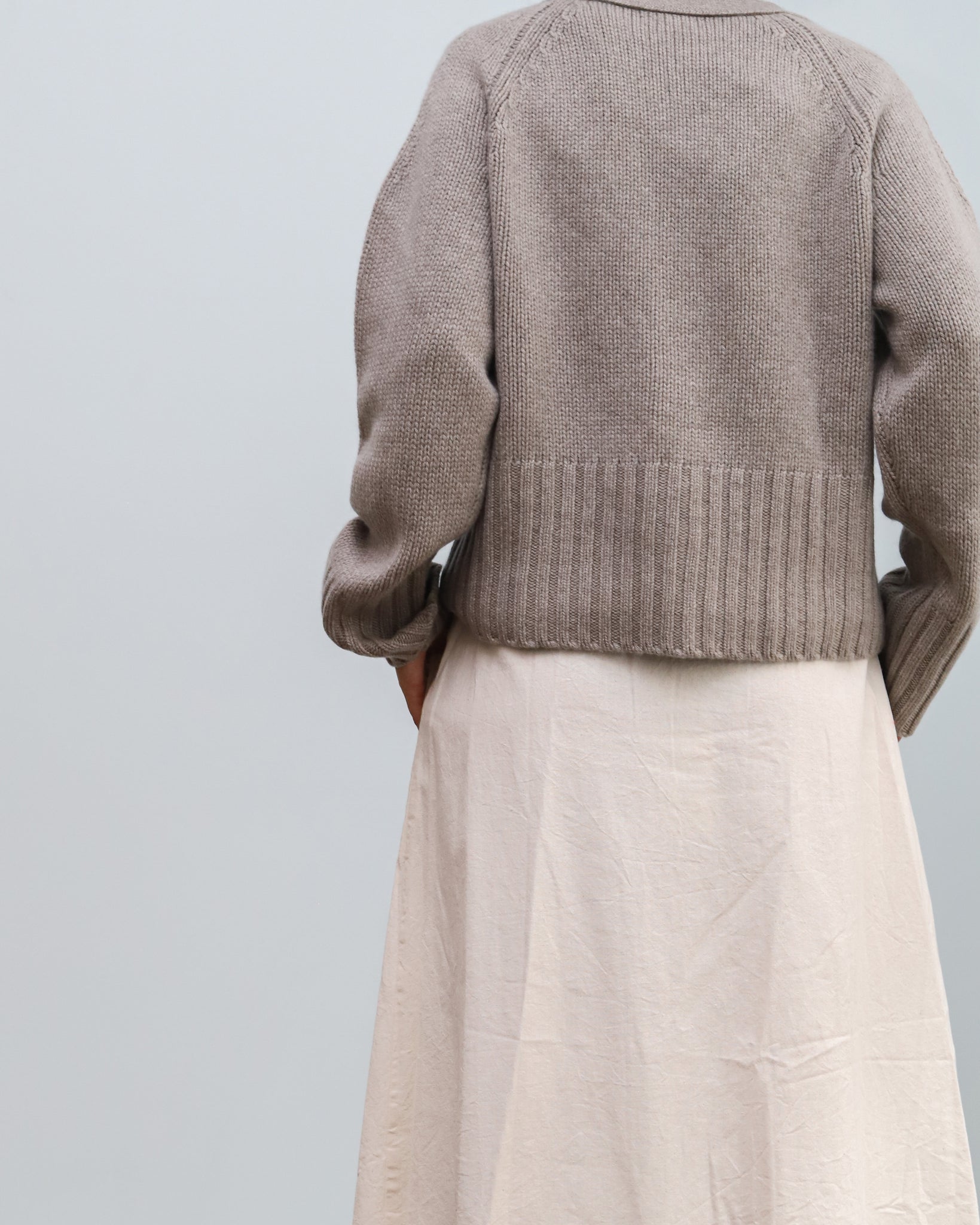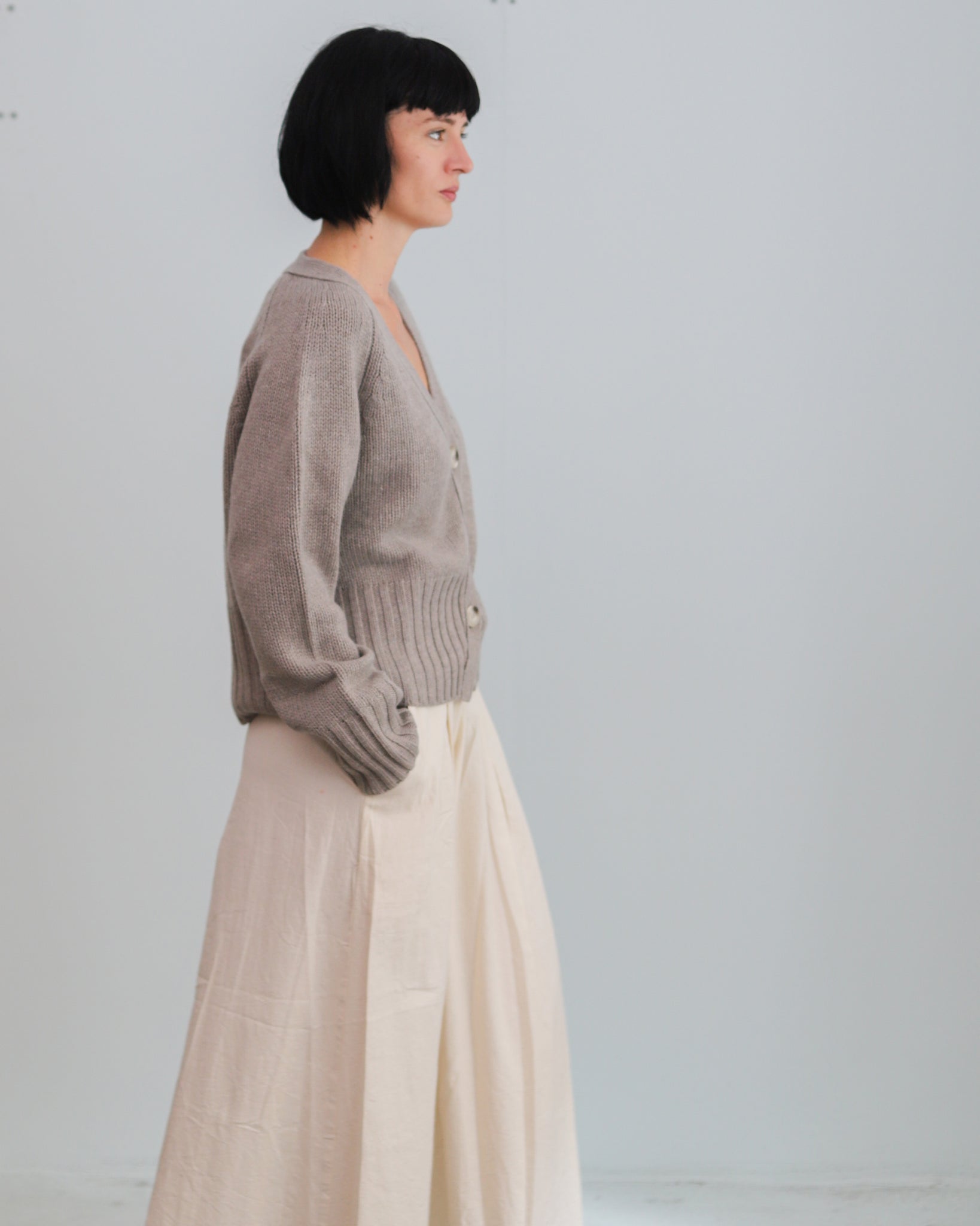 Chaqueta de cashmere de punto grueso con escote en V y abotonado delantero.