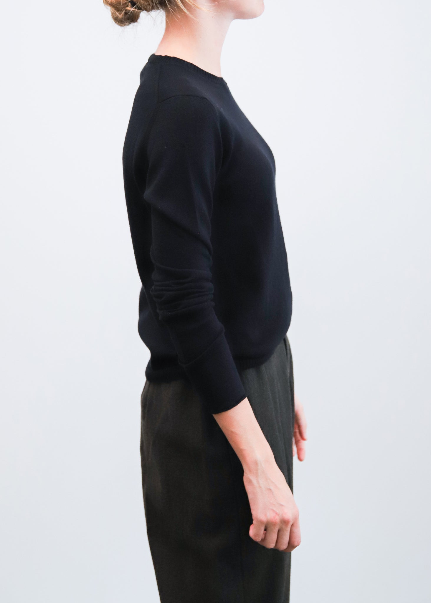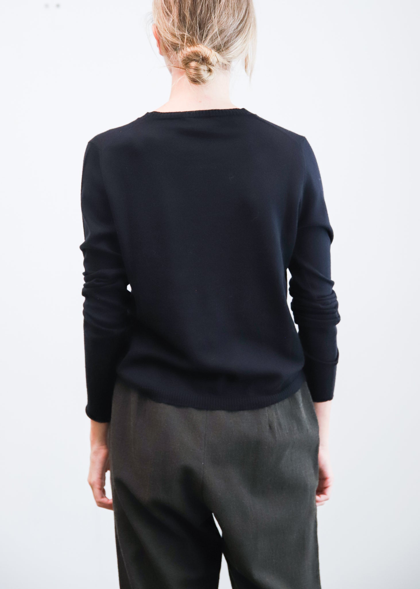 Jersey fino de algodón y lana, de corte recto y cuello a la caja.