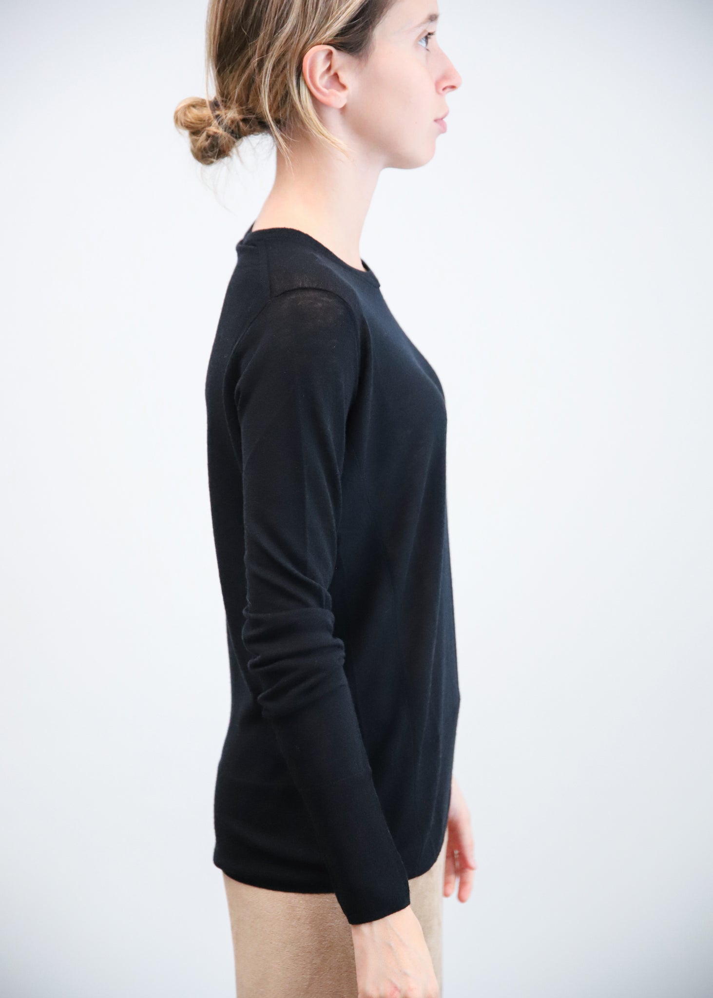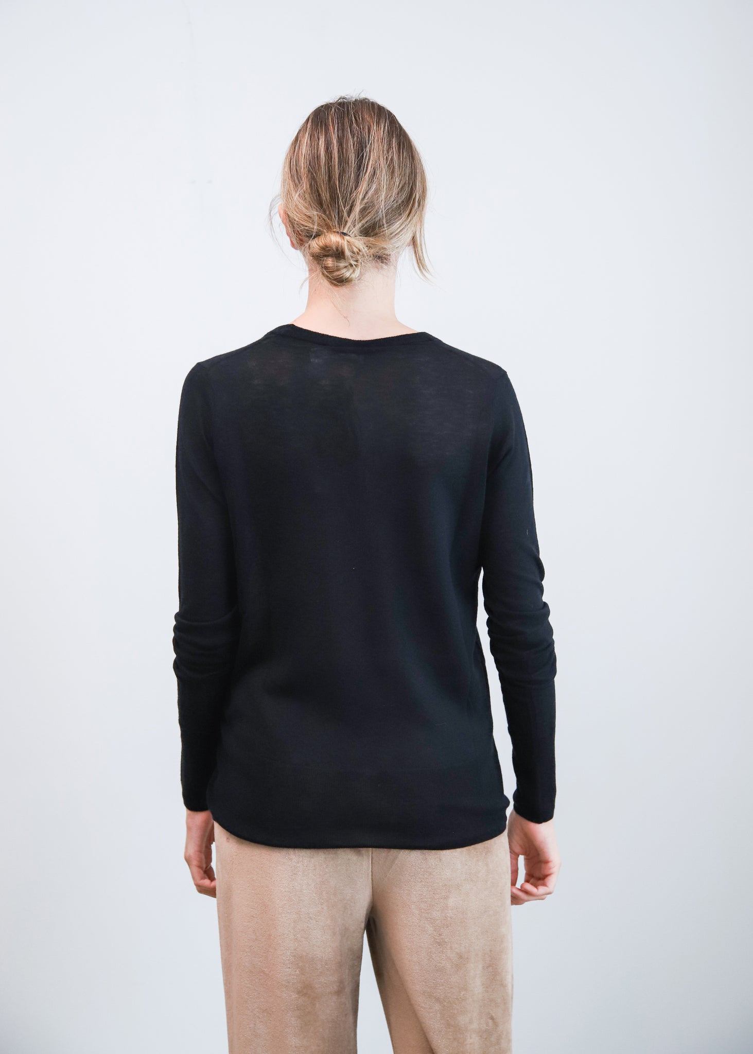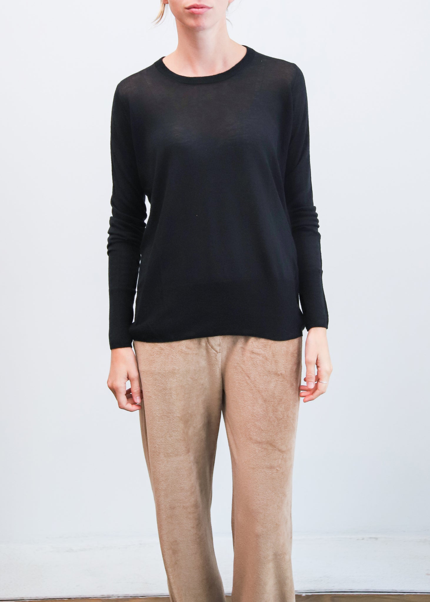Jersey de lana de punto fino con cuello a la caja y corte recto.
