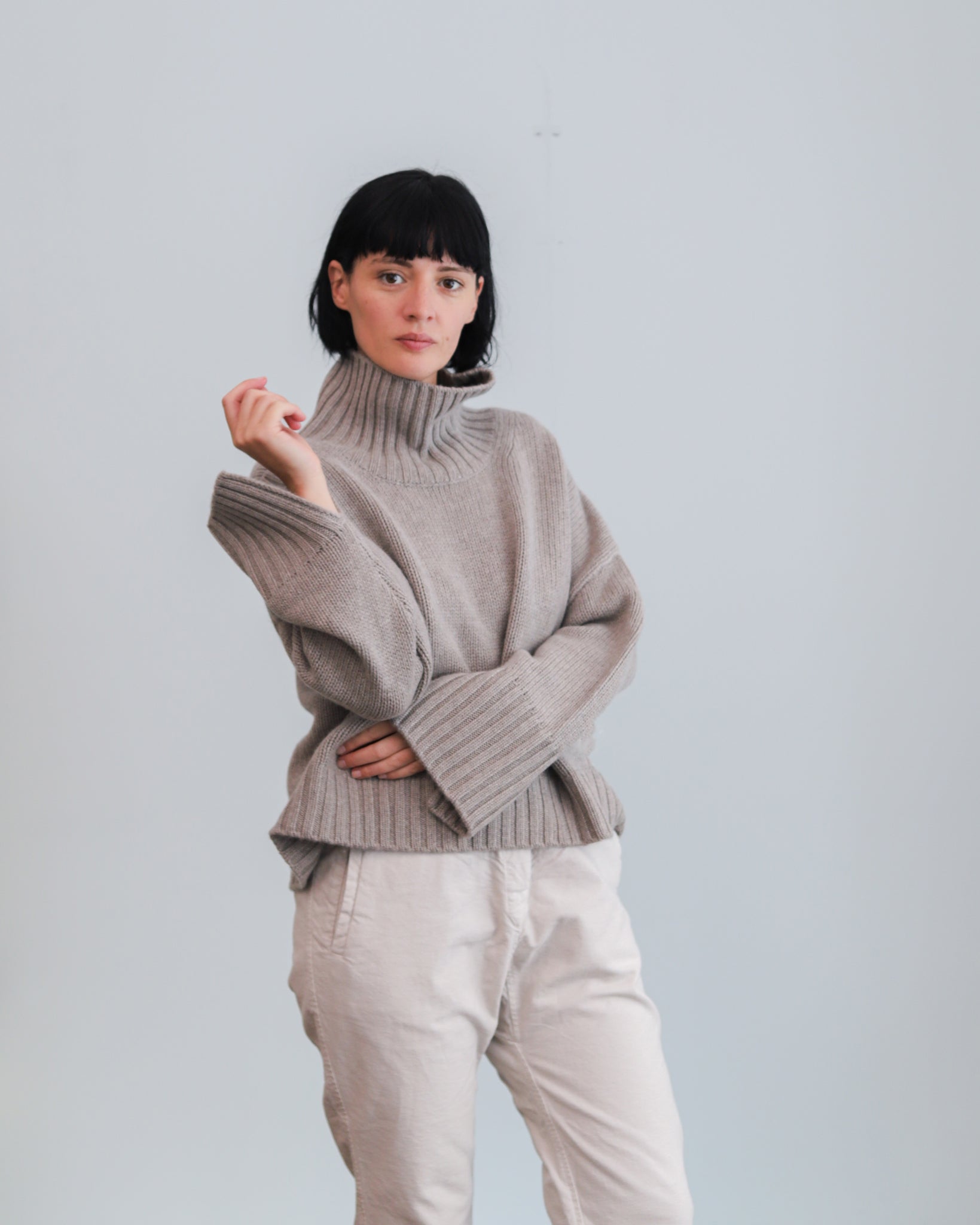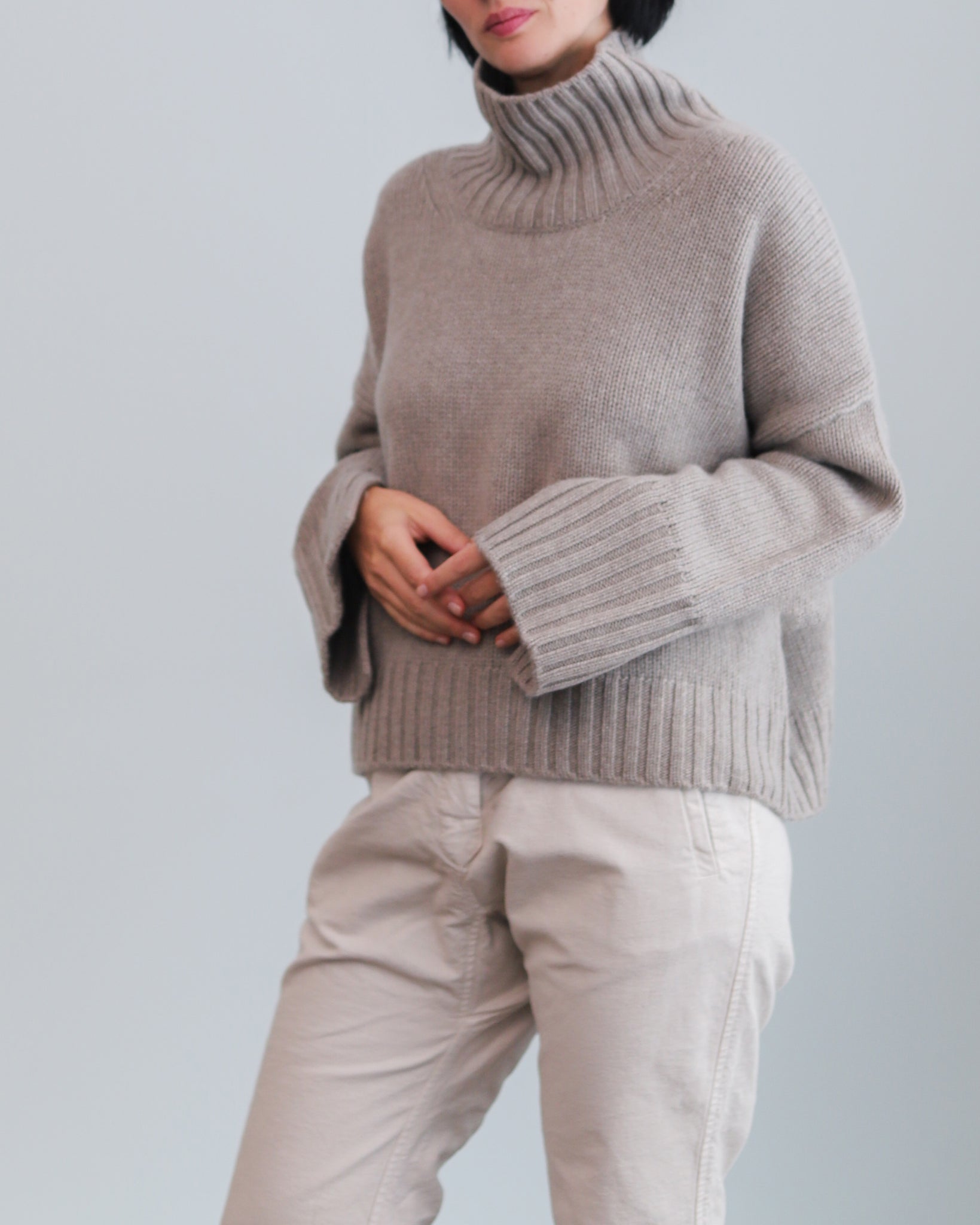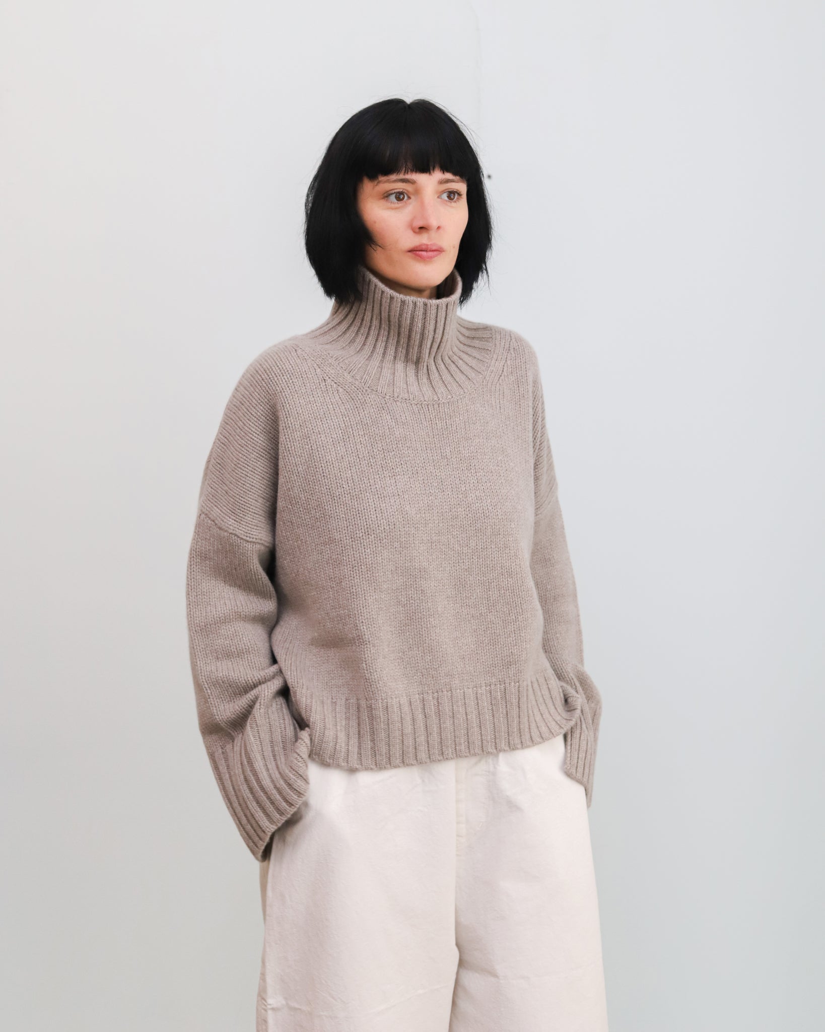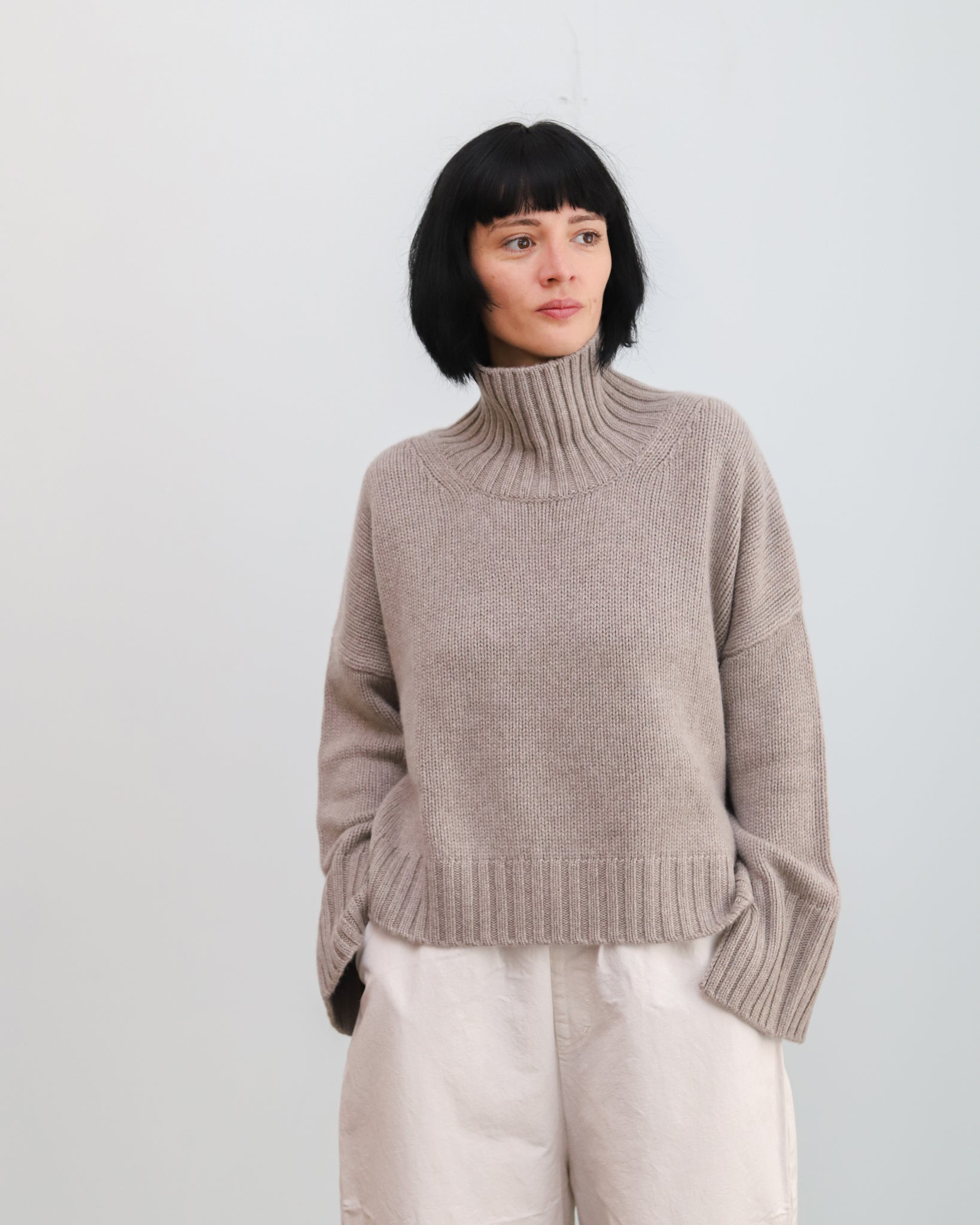 Jersey de cashmere de punto grueso con cuello alto.