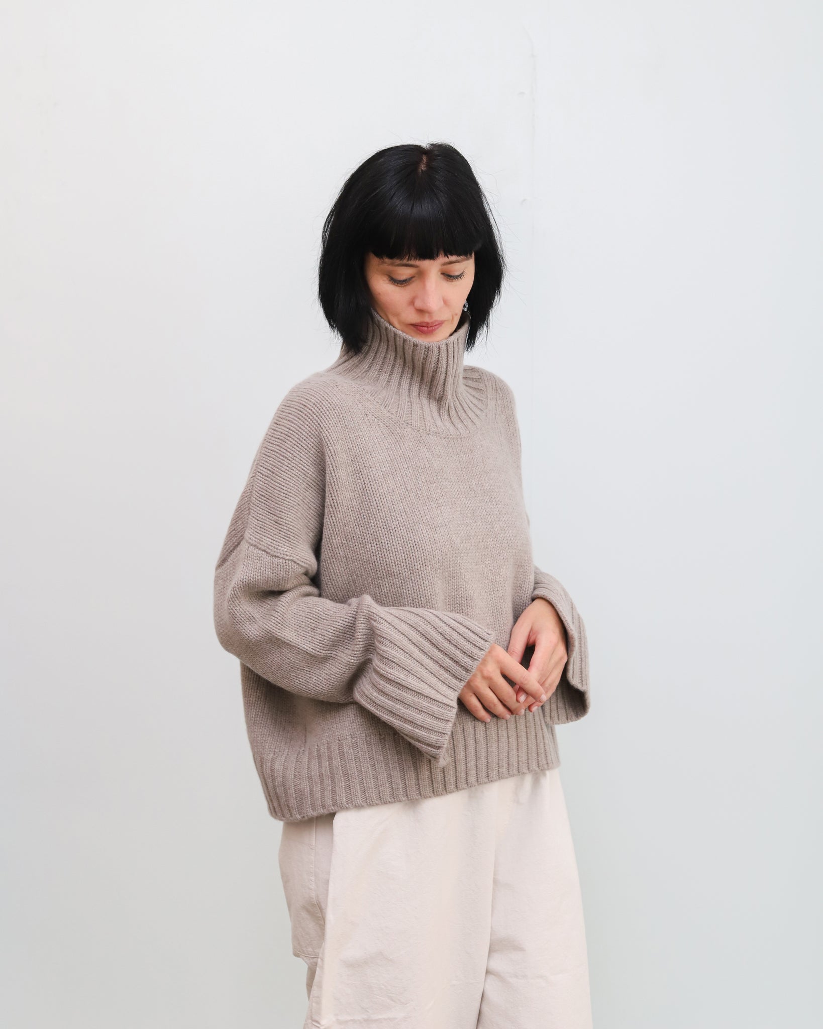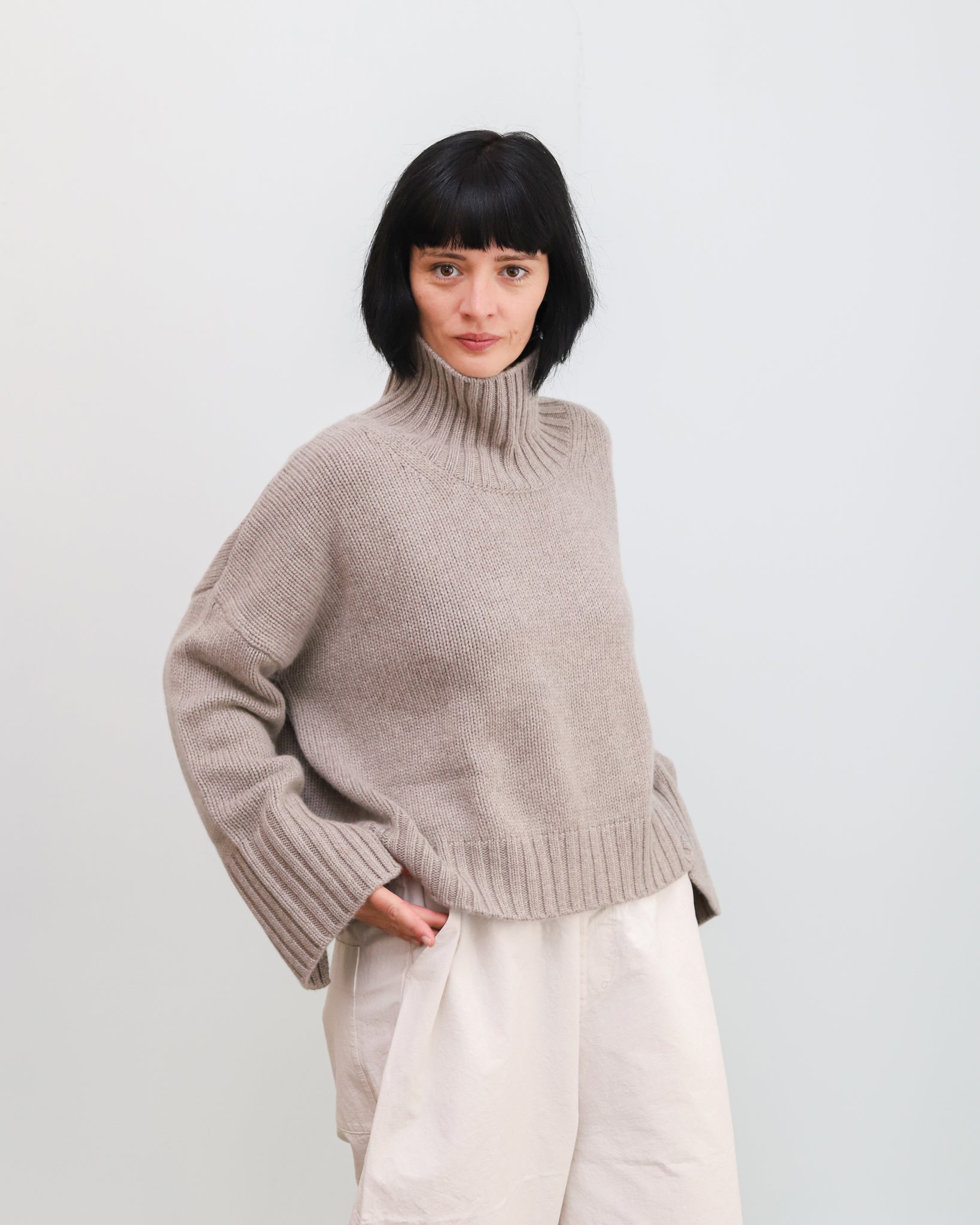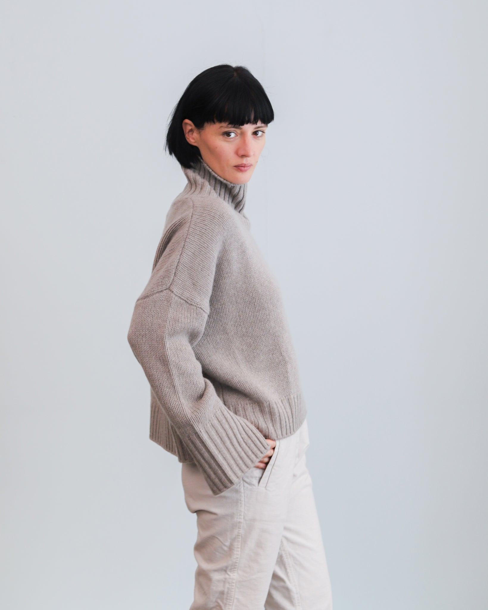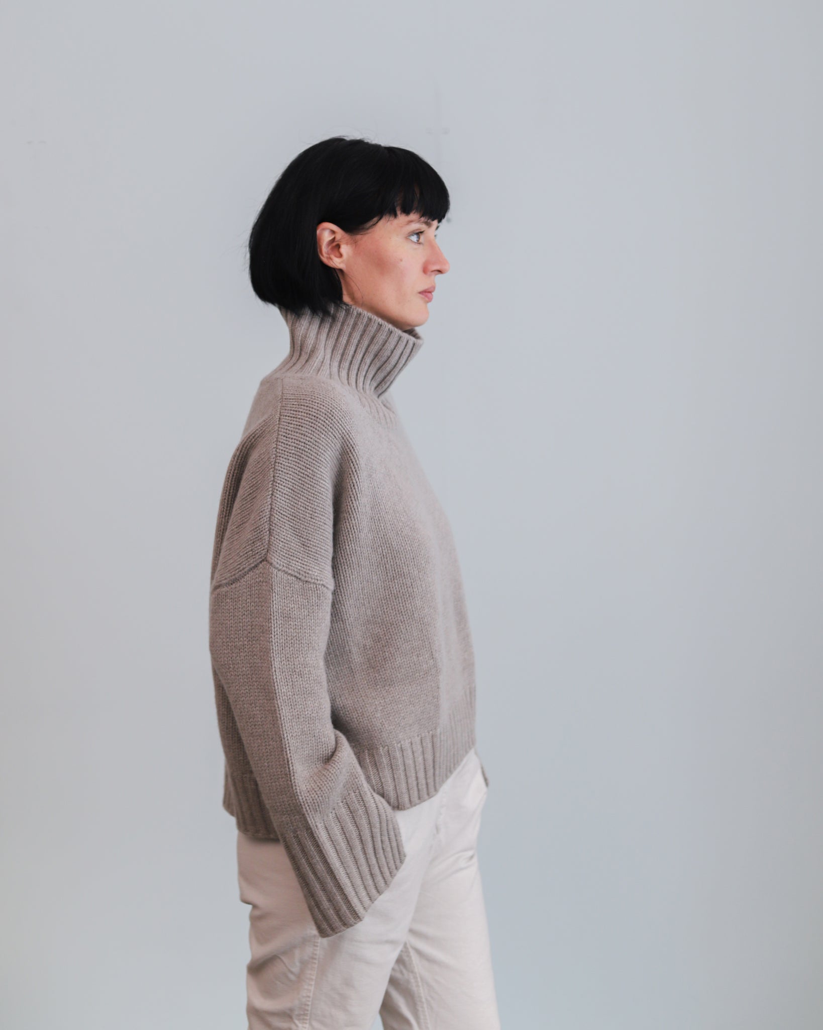 Jersey de cashmere de punto grueso con cuello alto.