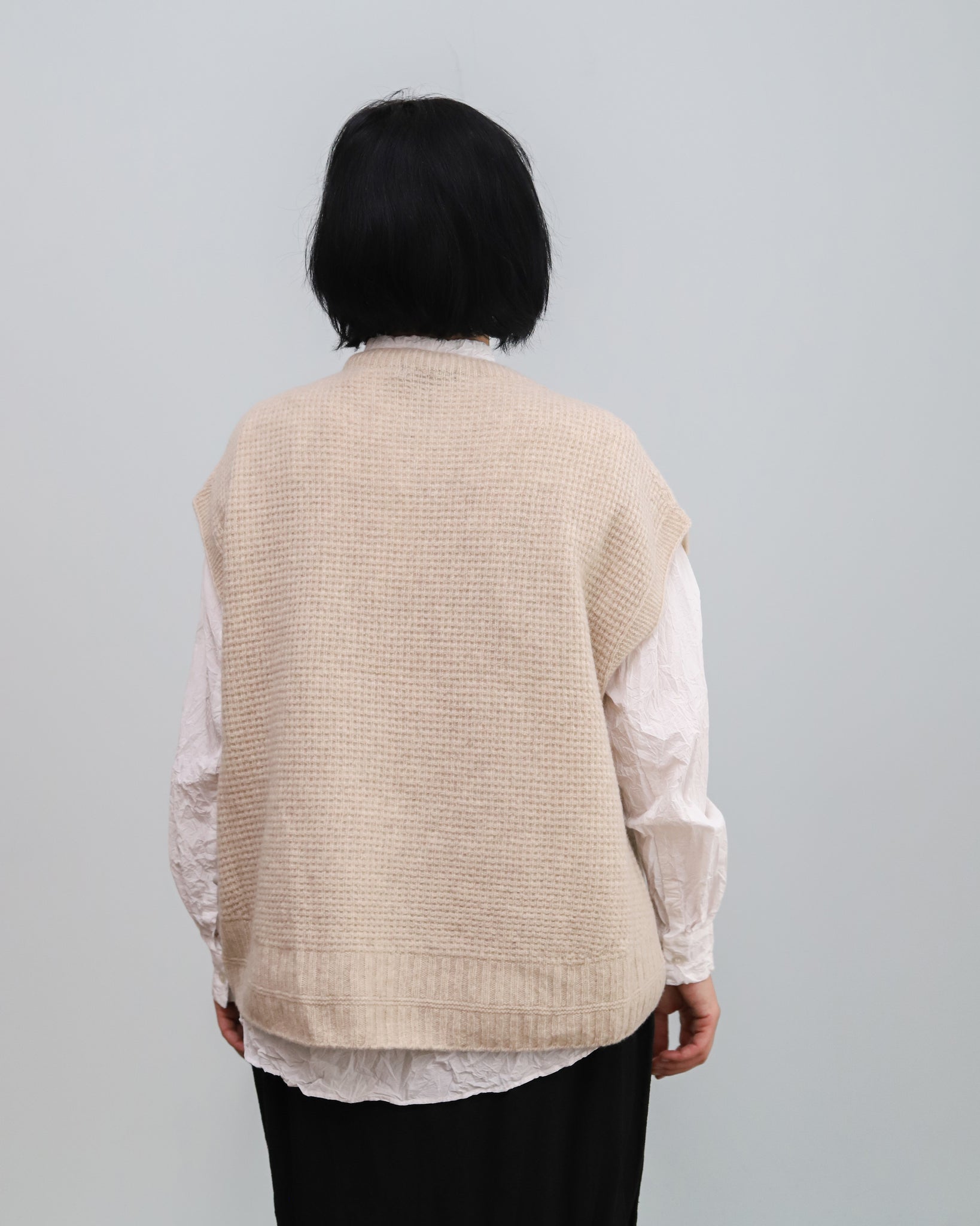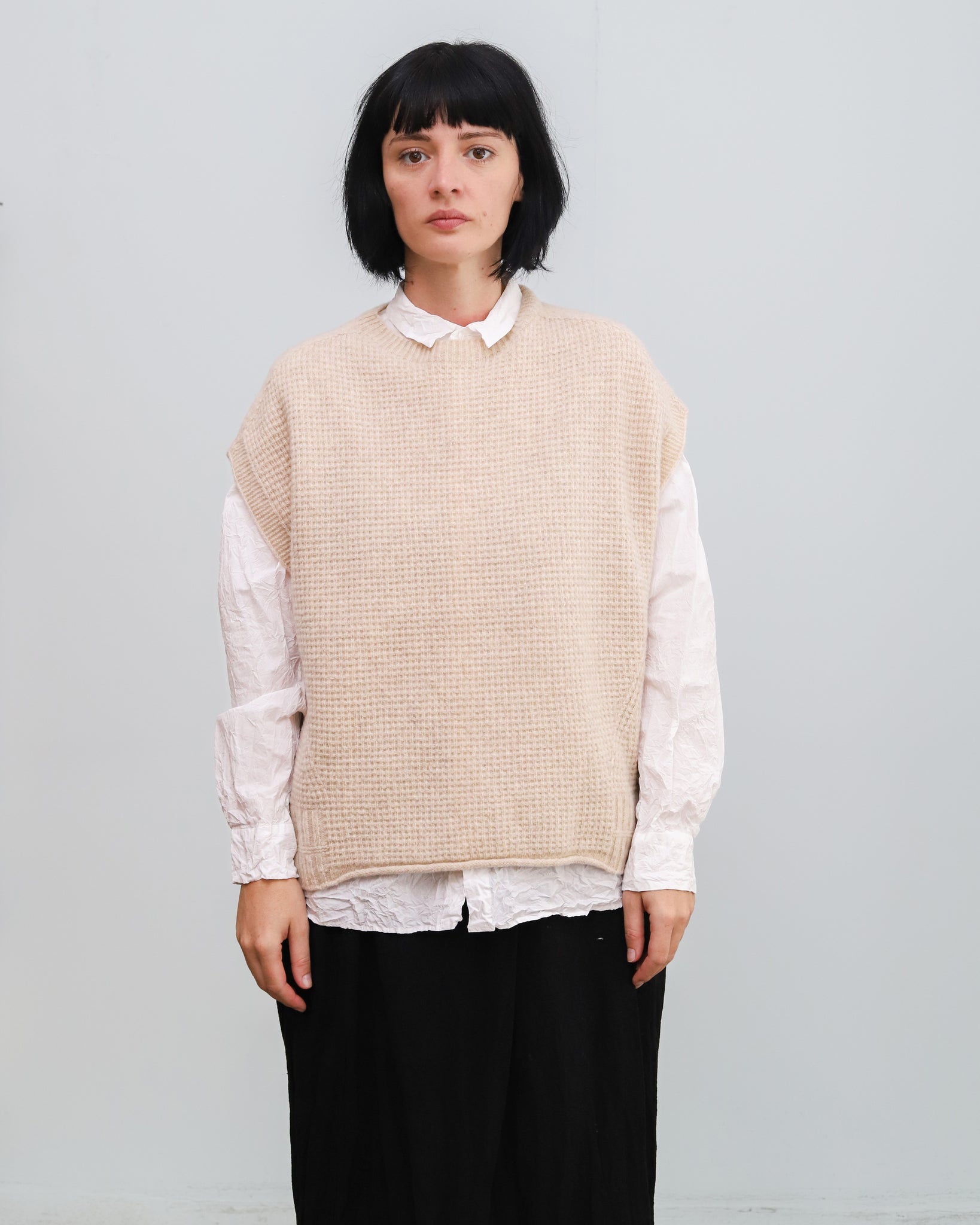 Chaleco de lana y cashmere de corte ancho color crudo.
